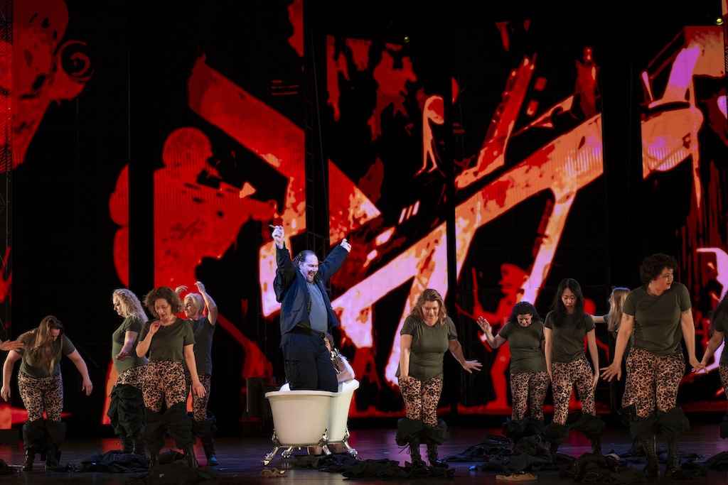 Mais nous vivons à l'ère où ce ne sont pas les chanteurs mais les metteurs en scène qui font la loi. C'est pourquoi j’ai lu avec une attention particulière l'interview de Calixto Bieito, qui termine avec Khovantchina son cycle russe au Grand Théâtre de Genève, après Guerre et Paix en 2021 et Lady Macbeth de Mtsensk en 2023. Mes critiques de ces spectacles ont donné à mes lecteurs une idée de son style. Dans Khovantchina, il a été attiré – comme il s'est avéré – par « une grande force mais aussi une nostalgie et une brutalité massives ». Les goûts ne se discutent pas et il n'y a aucune raison de douter de sa sincérité. Cependant, il poursuit l'interview en précisant qu'il n'avait pas l'intention de relier l'opéra de Moussorgski « aux problématiques que nous observons aujourd’hui. Je ne veux rien ajouter au contexte existant et je ne suis pas intéressé pas au théâtre social ou politique, parce que je ne suis ni politique ni sociologue ». Eh bien, ici, Calixto Bieito s'est clairement plié à l'exercice.