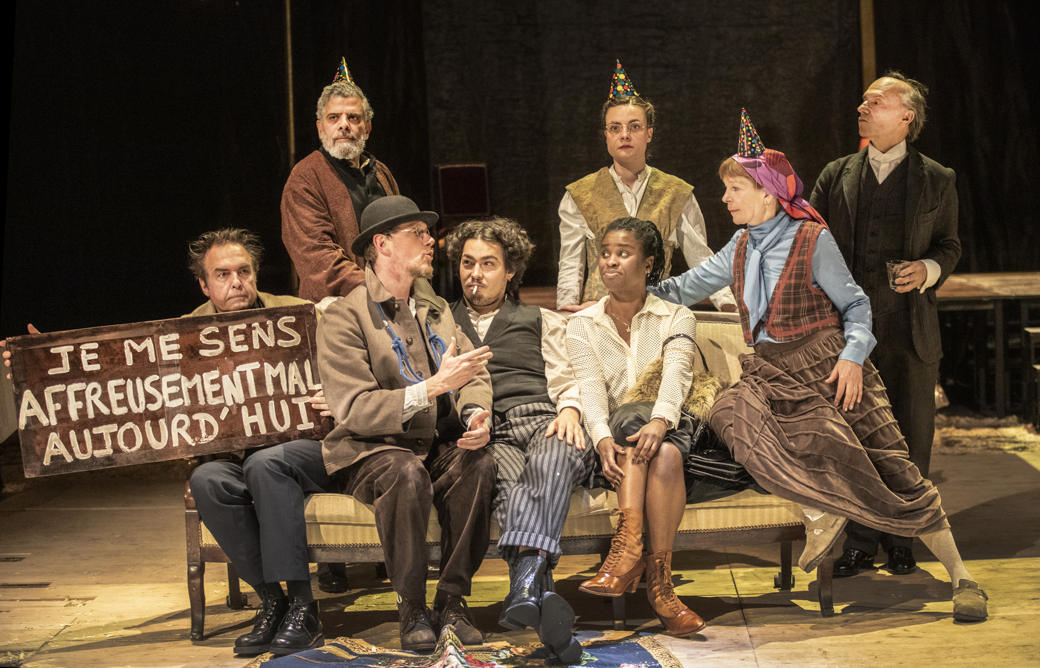 Les propos sur la mésalliance d’Ivanov, qui a épousé une femme juive, les méchancetés proférées contre Sara/Anna par la « société » réunie chez les Lebedev, affublée de bonnets de clown, relèvent d’un antisémitisme ordinaire dont la persistance est patente. Et la manière dont le comte Chabelski, parasite de salon (Christian Esnay), accable cette femme mourante est d’une cruauté remarquable – de quoi inspirer Jean-Luc Mélenchon. Après sa mort, le même homme pleure : « J’ai regardé ce violoncelle et je me suis souvenu de la petite juive… Une femme admirable, splendide ! »