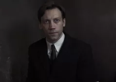 (In this role appears Alexander Kuznetsov, a thirty-three-year-old native of Sevastopol, a graduate of Moscow’s GITIS theatre institute, who made a brilliant start to his career. In February 2022, he signed an open letter against Russia’s military invasion of Ukraine, and in September of the same year moved to the United Kingdom.) How elegant he is in his macintosh and hat, how firm in his exchanges with the camp’s duty officer, played by Latvian actor Andris Keišs, and then with his superior, portrayed by Lithuanian actor Vytautas Kaniušonis. What nonchalance this superior displays, seated in his office beneath a portrait of Felix Dzerzhinsky, founder and head of the Cheka, the Bolshevik state’s political police, and the poster “Be vigilant!”. What calculated slowness, what persuasive force in his unequivocal warnings to Kornev about a “virus” he risks catching by insisting on meeting Stepniak. “Do you know where your predecessor is now?”, he asks. But the threats have no effect. Kornev is young and principled. He is a romantic. Romantics do not live long.