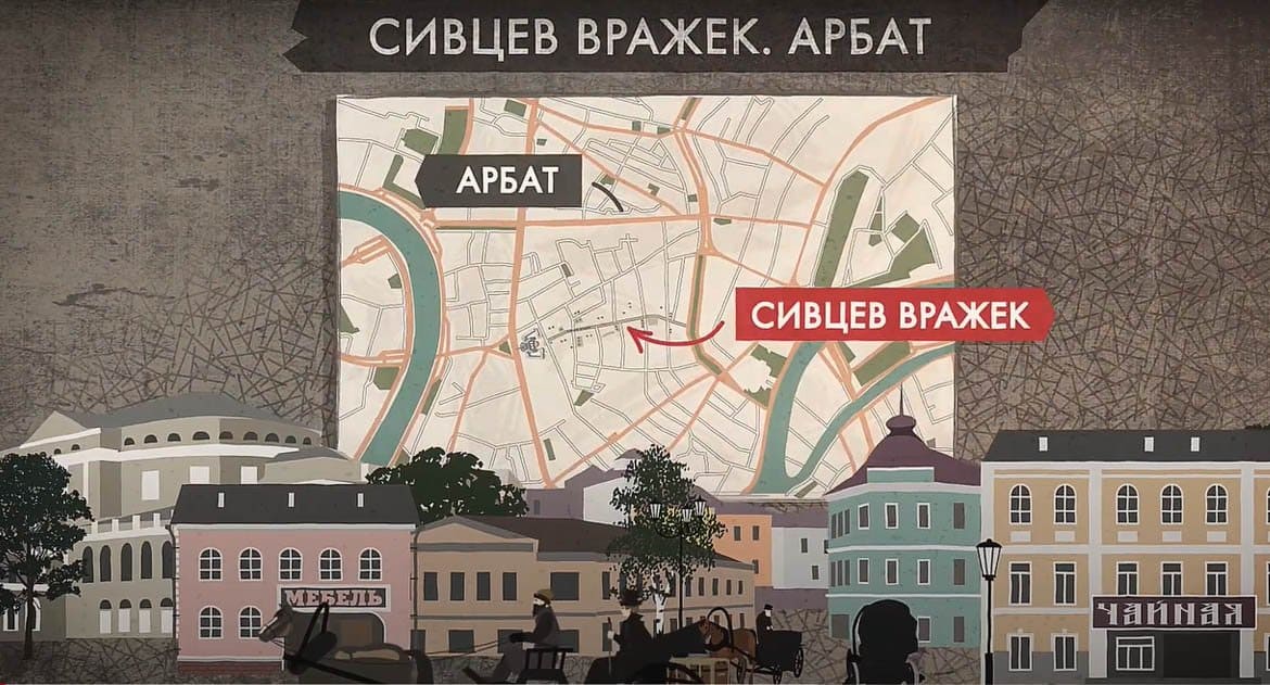 По-французски роман назван «Улица Москвы», что, возможно, и неплохо, поскольку не только иностранцам, но и многим россиянам и даже москвичам, особенно не коренным, название «Сивцев Вражек» может ничего и не сказать. А потому стоит пояснить, что речь идет о переулке в центре Москвы, между Гоголевским бульваром и Денежным переулком. Название переулок получил в 17 веке, и произошло оно от оврага («вражка»), по дну которого текла небольшая река Сивец (или Сивка), известная еще с века 14-го и в свою очередь получившая название по «сивому» (серому) цвету воды. Сивцев Вражек несколько раз менял своё название, становясь то Троицким, то Протасьевским, то Подьяческим. В 1910-х годах начал обозначаться Сивцевым Вражком, да так и остался.
