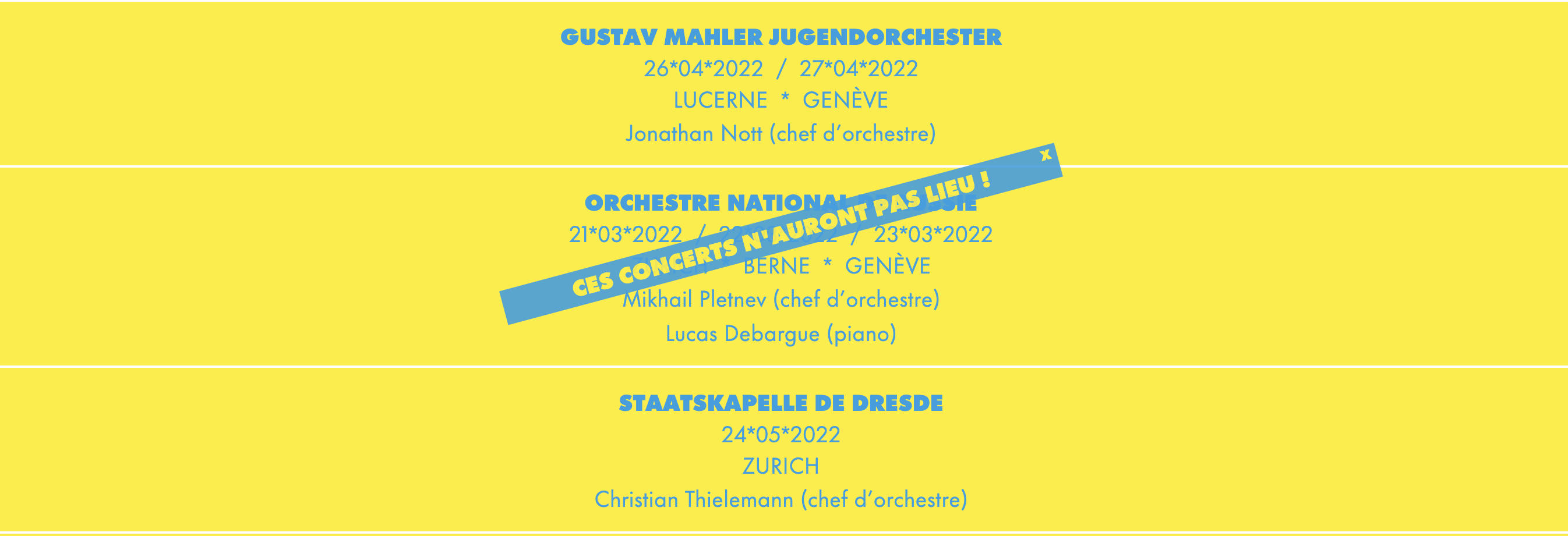 Migros-Pour-cent-culturel-Classics a annulé la tournée de l’Orchestre national Russe qui devait jouer sous la baguette de Mikhaïl Pletnev, résident suisse de longue date, avec le pianiste français Lucas Debarque comme soliste.