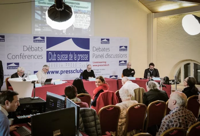 « Alors que le conflit russo-ukrainien s’intensifie, la guerre de l’information fait rage et prend des proportions inédites. Les répercussions de cette bataille entre tenants d’une forme de “censure de guerre” et défenseurs de la liberté d’expression sans limite a aussi ses répercussions en Suisse et en Suisse romande. L’information est-elle une arme de guerre et, si oui, quelle est sa véritable force de frappe ? Y a-t-il une censure légitime en temps de guerre ? La presse doit-elle choisir son camp ? A-t-elle pour mission de défendre la démocratie à tout prix ? Et que devient la liberté d’expression ? Réduite à rien ou presque en Russie, la liberté de parole se trouve-t-elle aussi menacée en Europe, en Suisse ? A-t-on le droit de “comprendre” voire soutenir certaines réactions de Vladimir Poutine ou de critiquer l’Occident ? Quelles règles s’imposent aux journalistes en temps de guerre ? » A toutes ces questions s’en est vu rajouter une autre, très importante, celle du rôle des réseaux sociaux – une première dans un conflit armé en Europe.