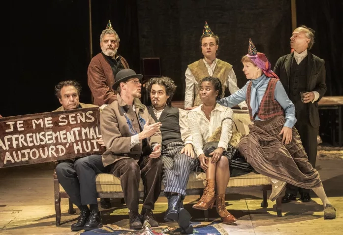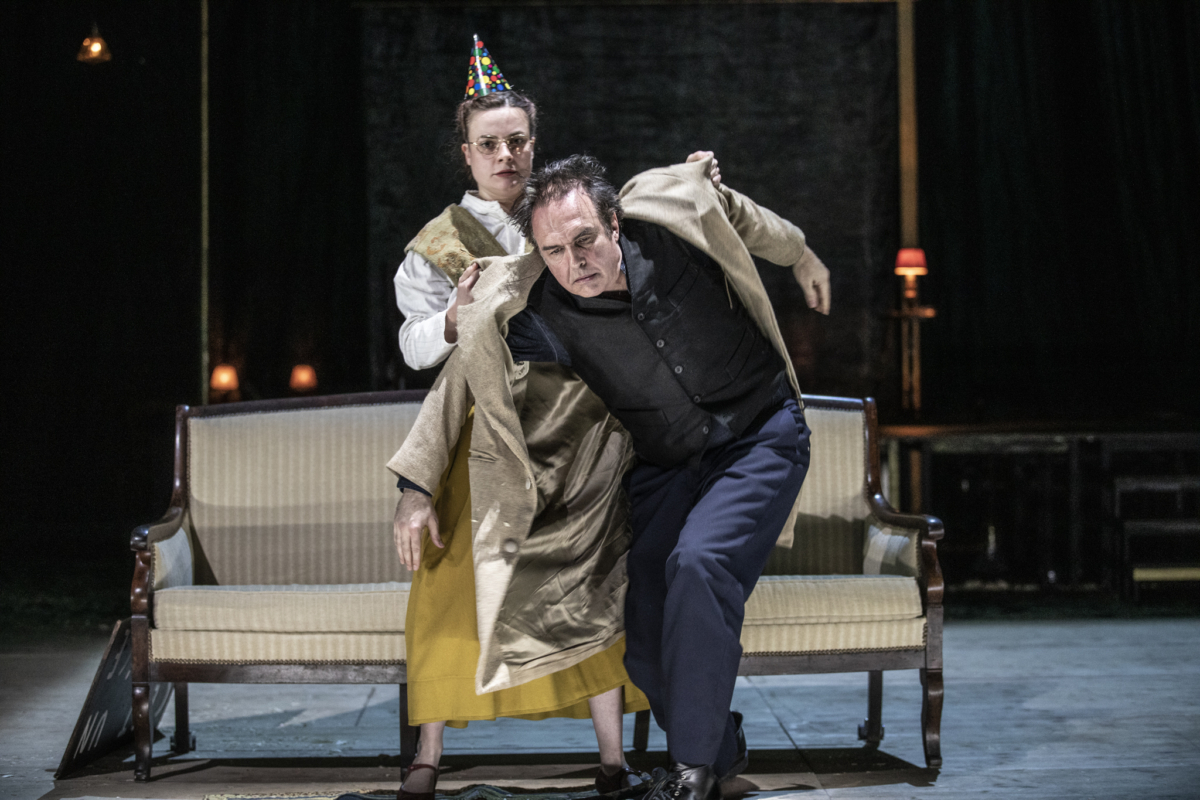 Les propos sur la mésalliance d’Ivanov, qui a épousé une femme juive, les méchancetés proférées contre Sara/Anna par la « société » réunie chez les Lebedev, affublée de bonnets de clown, relèvent d’un antisémitisme ordinaire dont la persistance est patente. Et la manière dont le comte Chabelski, parasite de salon (Christian Esnay), accable cette femme mourante est d’une cruauté remarquable – de quoi inspirer Jean-Luc Mélenchon. Après sa mort, le même homme pleure : « J’ai regardé ce violoncelle et je me suis souvenu de la petite juive… Une femme admirable, splendide ! »