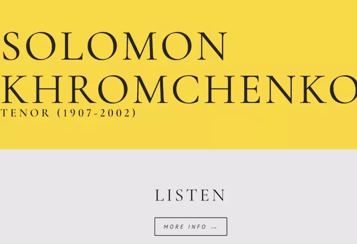 Lorsqu'on partage avec quelqu’un sa vie au quotidien pendant un bon nombre d’années, on pense avoir fini par tout savoir de cette personne ; qu'on peut donc se passer de toutes questions complémentaires. C'est là ce que moi aussi je pensais, ayant vécu vingt et un ans dans le même appartement que mon grand-père, Solomon Khromtchenko (1907-2002), un ténor très populaire du théâtre Bolchoï depuis les années 1930.  Vécu, dis-je, au sein d’un coopératif du théâtre Bolchoï de la rue Gorki, à Moscou. Mes voisins comptaient Emil Gilels et Maya Plissetskaïa, pour ne nommer que deux parmi d'autres artistes « soviétiques » exceptionnels et mondialement connus. Certes, je les ai connus déjà âgés ; toutefois, grâce à eux, le génie est devenu pour moi une chose normale dès l'enfance, et le perfectionnisme professionnel la norme pour le reste de ma vie.