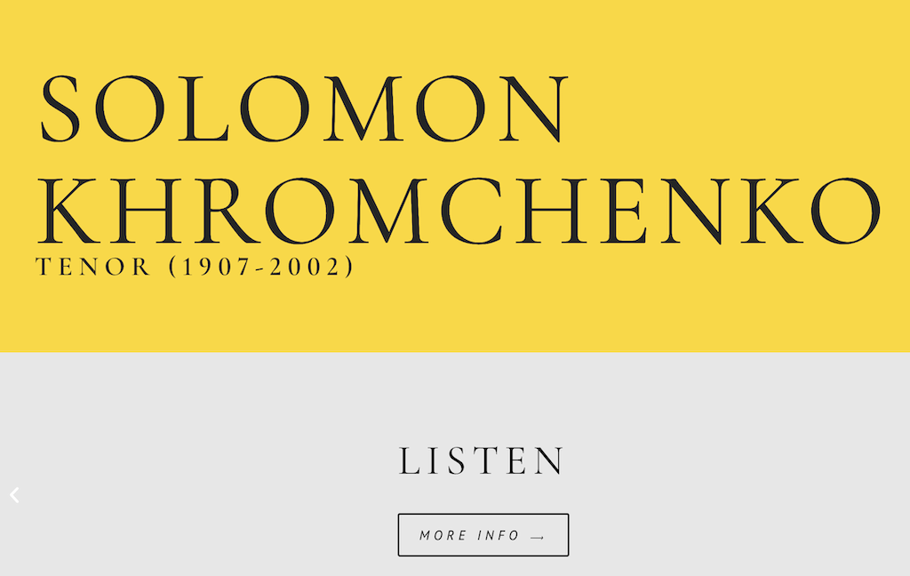 Lorsqu'on partage avec quelqu’un sa vie au quotidien pendant un bon nombre d’années, on pense avoir fini par tout savoir de cette personne ; qu'on peut donc se passer de toutes questions complémentaires. C'est là ce que moi aussi je pensais, ayant vécu vingt et un ans dans le même appartement que mon grand-père, Solomon Khromtchenko (1907-2002), un ténor très populaire du théâtre Bolchoï depuis les années 1930.  Vécu, dis-je, au sein d’un coopératif du théâtre Bolchoï de la rue Gorki, à Moscou. Mes voisins comptaient Emil Gilels et Maya Plissetskaïa, pour ne nommer que deux parmi d'autres artistes « soviétiques » exceptionnels et mondialement connus. Certes, je les ai connus déjà âgés ; toutefois, grâce à eux, le génie est devenu pour moi une chose normale dès l'enfance, et le perfectionnisme professionnel la norme pour le reste de ma vie.
