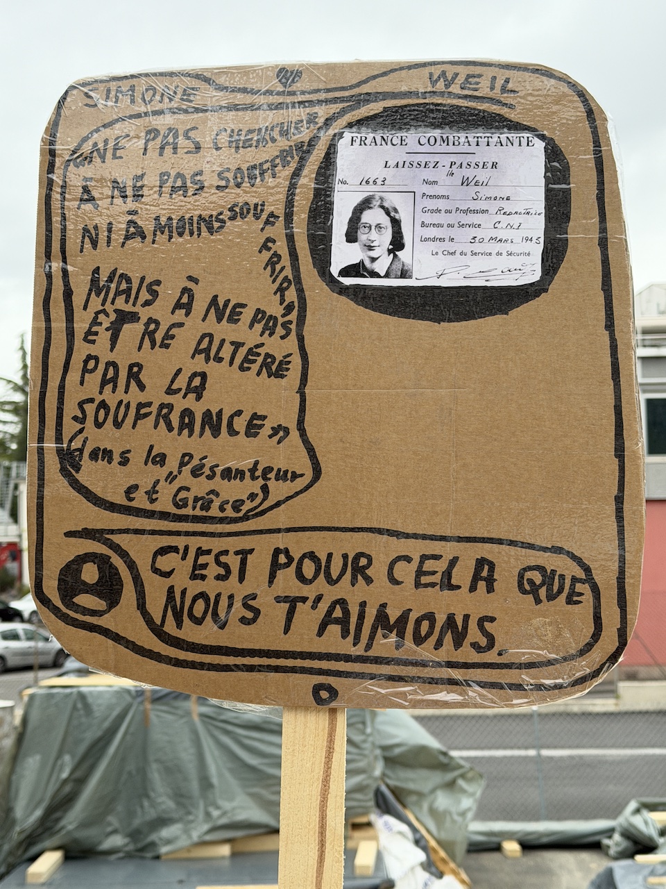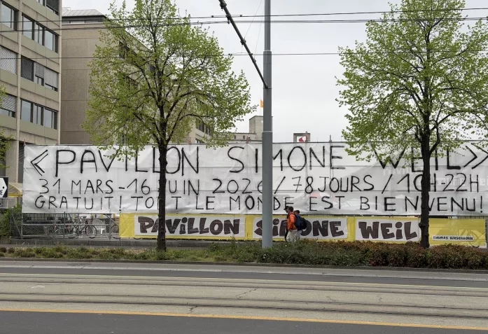 Именно таким образом швейцарский художник Томас Хиршхорн, известный своими коллективными и интерактивными творениями – вспомним гигантскую скульптуру писателя Роберта Вальзера, установленную в Бьенне в 2019 году – решил почтить память Симоны Вейль, которая привлекла его своей «радикальностью и уникальностью», а также теорией внимания и размышлениями о благодати.