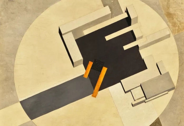 На выставке можно увидеть целую серию знаменитых проунов Лисицкого. Название было придумано им самим для обозначения изобретённой им же новой художественной системы, соединявшей идею геометрической плоскости с законами конструктивного построения объёмной формы. Обращает на себя внимание лексико-семантическая близость понятий «проун» и «проум» – слова, придуманного Велемиром Хлебниковым и трактованного им как «проникновение в будущее», хотя, скорее всего, это случайное совпадение, обусловленное общей направленностью мысли авангардного искусства.