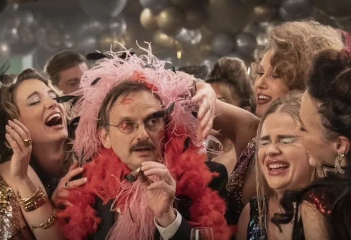 Да, весь этот человеческий зверинец собирается в роскошном отеле, чтобы отметить новый 2000 год, начало нового тысячелетия, когда, помните, многие предвещали конец света или какой-то вселенский технологический баг. Все они богаты, и у каждого свои причуды: от свежей травы на снегу, без которой не может сделать по большому карликовый песик маркизы, до живого пингвина, заказанного миллиардером для своей женушки. Но не все приехали просто отдыхать. Билли Краш пользуется пребыванием в Швейцарии, чтобы провернуть финансовую аферу с помощью своего банковского управляющего Каспара Телля (хорошо, хоть не Вильгельма, но фамилия все равно говорящая, как и ассоциация с национальным героем). Этот тип (немецкий актер Милан Пешель) чем-то напоминает Андрея Мягкова в «Жестоком романсе», только сочувствия не вызывает никакого: случайно оказавшийся на чужом празднике жизни, он также продажен, как и все остальные, это только вопрос цены.