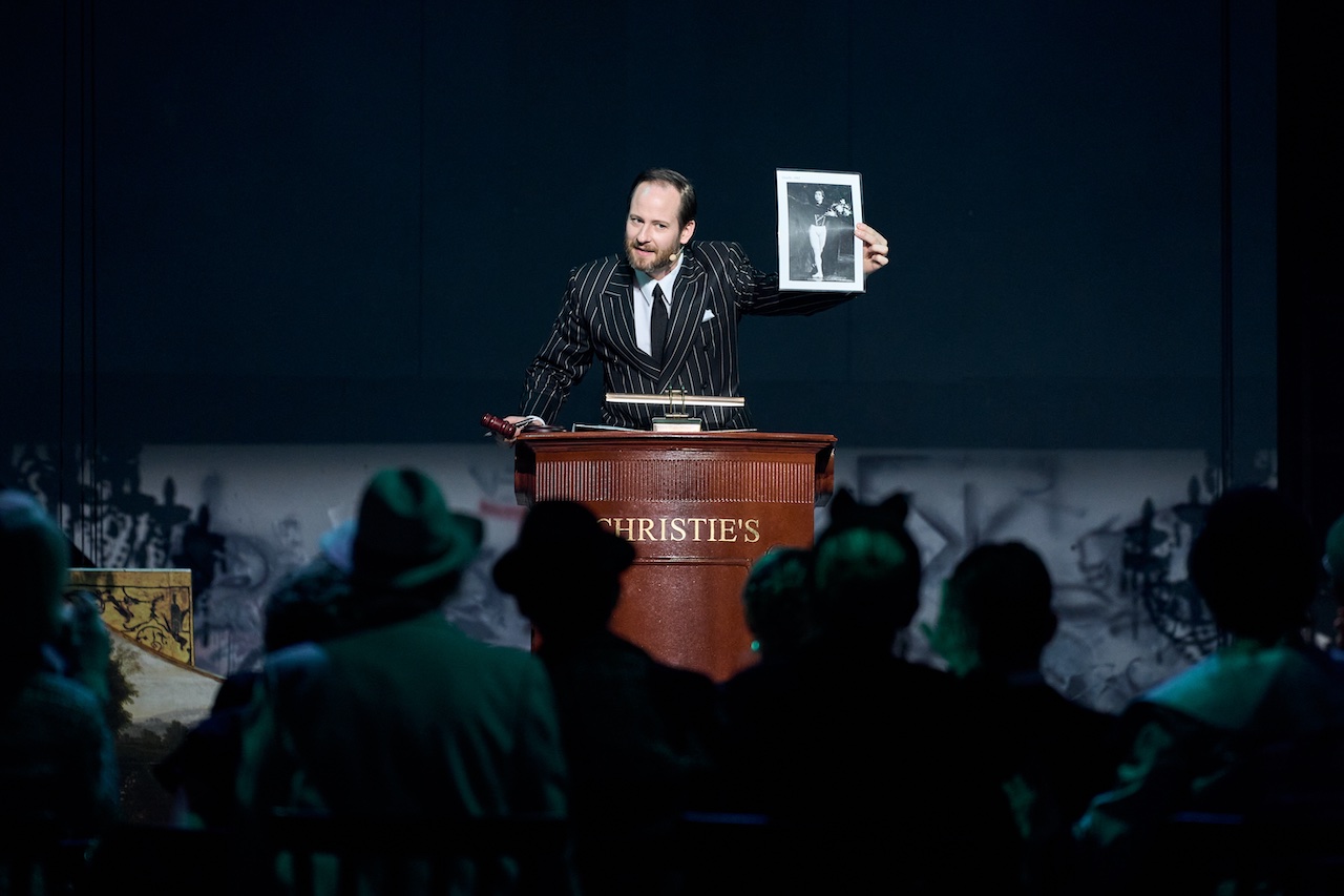 … На аукционе Christie’s распродают личные вещи Рудольфа Нуриева – с этого начинается спектакль. Аукционист объявляет лоты, объясняет их провенанс и называет стартовые цены. (В этой связывающей весь спектакль воедино роли, как и во всех других мною виденных, великолепен Один Лунд Байрон – американец, приехавший в Москву в 2005 году, чтобы учиться в Школе-студии МХАТ, да так там и оставшийся. Участник многих кинопроектов и театральных постановок Кирилла Серебренникова, в марте 2022 года он переехал из Москвы в Берлин.) Уносят диваны, стулья, лампы, ковры, подарки от сильных мира сегодня, включая Жаклин Кеннеди, таким образом постепенно освобождая сцену для Действия. В итоге внимание зрителя оказывается прикованным к двум портретам на заднике: слева – Николай II, справа – Агриппина Ваганова, основоположница русского классического балета, чье имя носит alma mater Рудольфа Нуриева, в 1991 году переименованная из училища в Академию русского балета.