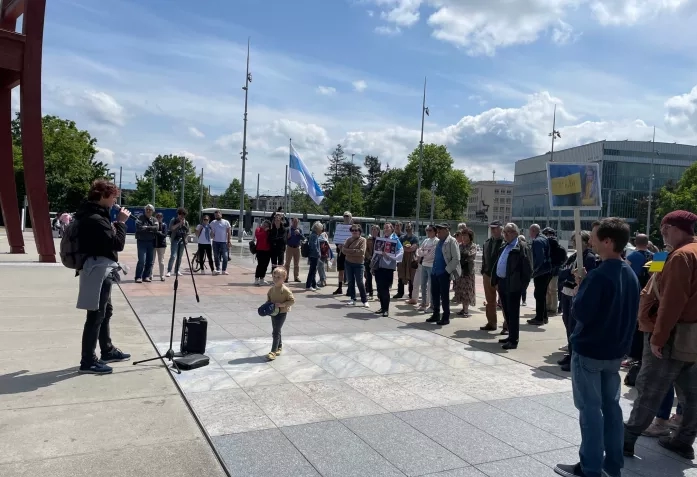 В воскресенье, 8 мая, на той же площади Наций состоялся «Парад за мир», организованный от имени русских, живущих в разных странах и выступающих против войны на Украине. «Мы выступаем против путинского режима, развязавшего военную агрессию против Украины. Наши деды воевали не за это!» - так аннонсировали акцию ее устроители.