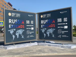 En juin 2019 j’ai participé au Forum économique de Saint-Pétersbourg. Je ne vous cache pas que j’ai été flattée d’y être invitée avec mon petit journal, un bateau en papier parmi les navires des holdings et autres transnationaux. Néanmoins, le reportage que j’ai fait à mon retour a été peu flatteur. J’ai mentionné en particulier un énorme poster posé à l’entrée du centre des conférences et omniprésent partout durant le Forum, y compris sur le kiosque de glaces. Le texte placé sur la carte de la Russie disait, en anglais, « Russia extends ». Aucun article ne l’avait mentionné, ce qui m’avait frappé déjà à l’époque – quelle occasion ratée pour les russophobes, quels commentaires sarcastiques auraient-ils pu mettre sous une photo avec ce message qui se prête si facilement à être interprété comme agressif et menaçant. En y repensant aujourd’hui, il l’était peut-être. Où annonçait-il honnêtement le programme du président russe que personne ne voulait prendre au sérieux ?