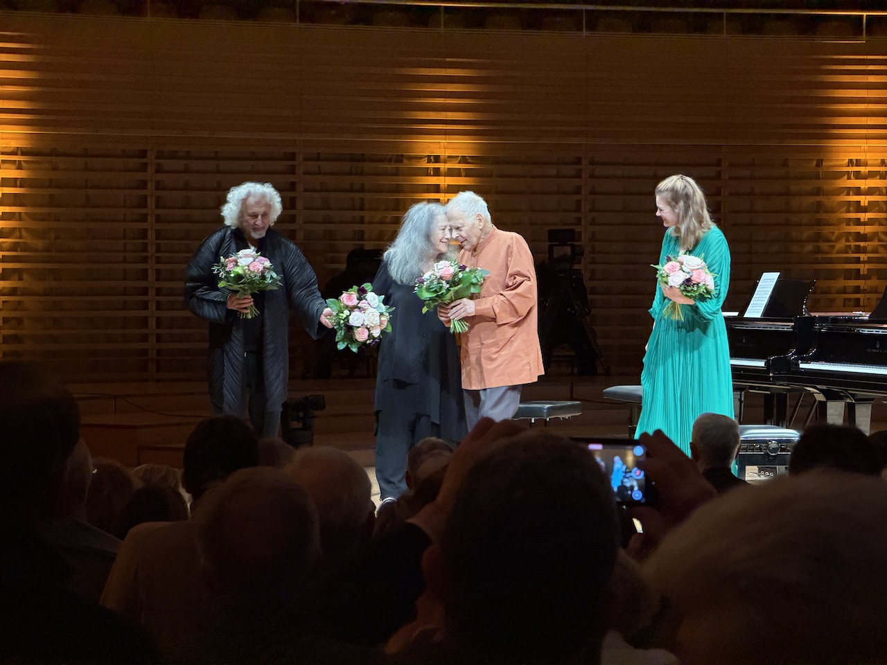 С американским пианистом Стивен Ковачевичем, 1940 года рождения, у Марты Аргерих общая дочь Стефани. Нет слов, чтобы описать эмоции, вызванные не только их совместным музицированием, но и просто поведением на сцене. Стивен Ковачевич еле ходит. Он долго, маленькими шажками шел к инструменту, долго усаживался, но как же звучал на двух их роялях Дебюсси! А когда в паузе между «En blanc et noir» («Белое и чёрное»), написанным в 1915 году, когда Первая мировая война была в разгаре, а у самого Дебюсси диагностировали рак, и Прелюдией к «Послеполуденному сну фавна» в переложении для двух роялей, сделанном композитором, они решили не покидать сцену, чтобы не тратить время, публика разразилась понимающими аплодисментами.